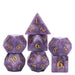 Set contains: 1 x D20, 1 x D12, 2 x d10 (1 percentage die), 1 x D8, 1 x D6 and 1 x D4 dice. Dice supplied in a PU leather hexagon box.